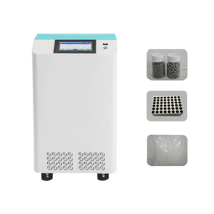 Das mehrkanälige vertikale Gefrierschleifgerät arbeitet in der Regel im vertikalen Schwingungsmodus.Es verwendet einen Motor, um die Schleifplattform zu antreiben, um hochfrequente Wechselbewegungen in drei Dimensionen (nach oben und unten) durchzuführen.Unter dieser Bewegung üben die Schleifperlen im Schleifglas hoffrequente Schläge, Scheren und Reibung auf die Probe aus, wodurch die Probe in feine Partikel geschliffen wird.Gleichzeitig, ist das Messgerät mit einem eingebauten Kühlsystem ausgestattet, das die Probentemperatur auf ein niedriges Niveau senken kann,die Bruchbarkeit der harten oder hitzeempfindlichen Proben und die Erleichterung des Schleifvorgangs.